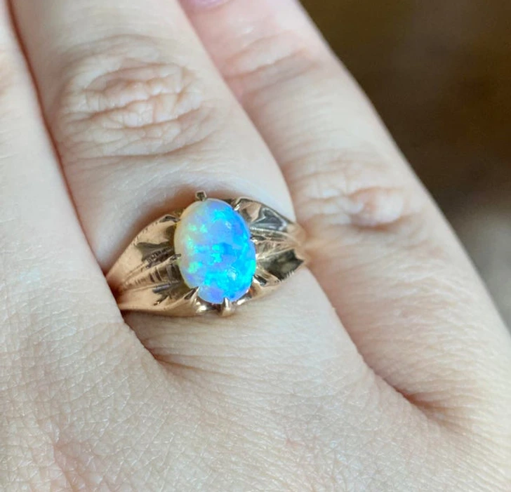 „Го купив овој антички прстен од опал и не можам да престанам да гледам колку е прекрасен каменот!