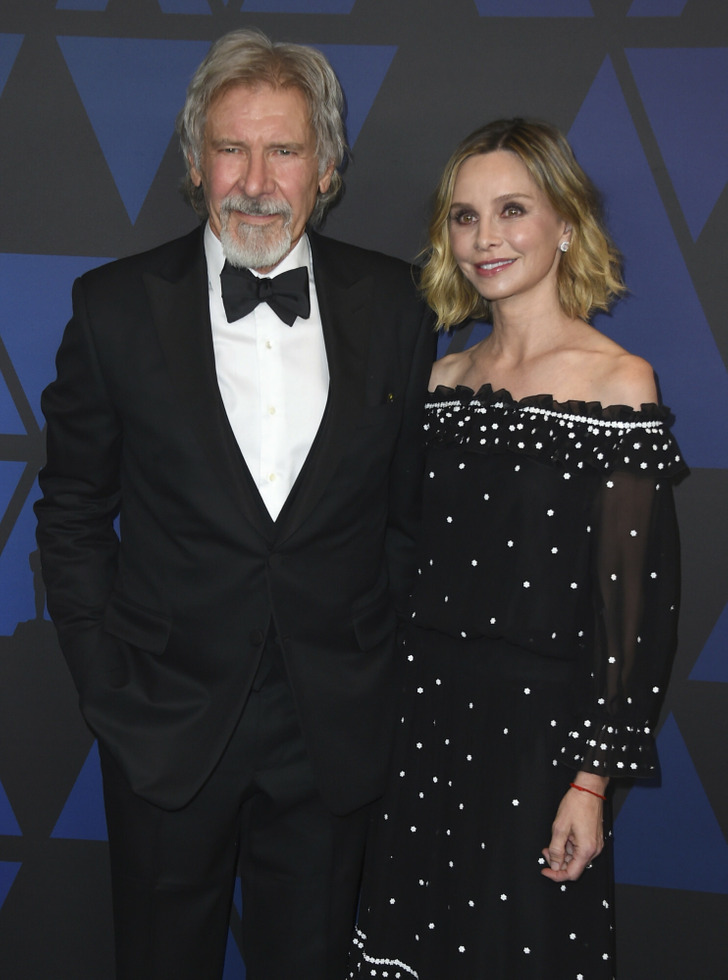 Харисон Форд и Калиста Флокхарт првпат се сретнале на наградите Златен глобус во 2002 година кога Форд имал 60 години, а Флокхарт 38. Тие поминаа 7 и пол години заедно пред Форд да ја запроси Флокхарт за време на викендот на Денот на вљубените во 2009 година во Санта Фе, Ново Мексико, и тие се родители на еден посвоен син.