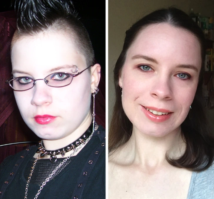 „17 и 34 години. Јас сум двојно постара, но сега се грижам за мојата кожа и имам соодветна фризура“.