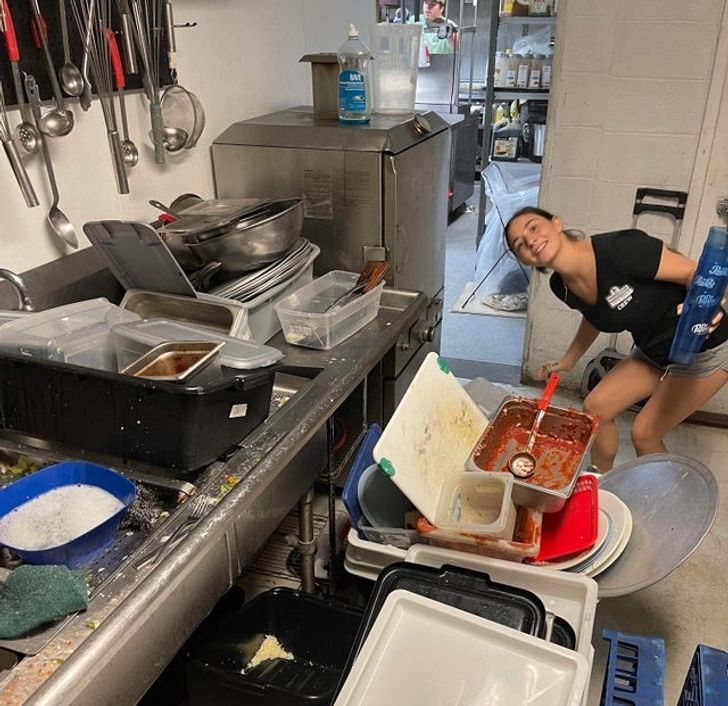 8. „Кога сте на прекувремена работа и готвачот ќе ве замоли да изметете“