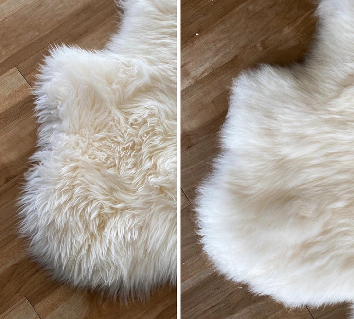 Еве што ќе се случи со килим од овча кожа ако го чешлате.