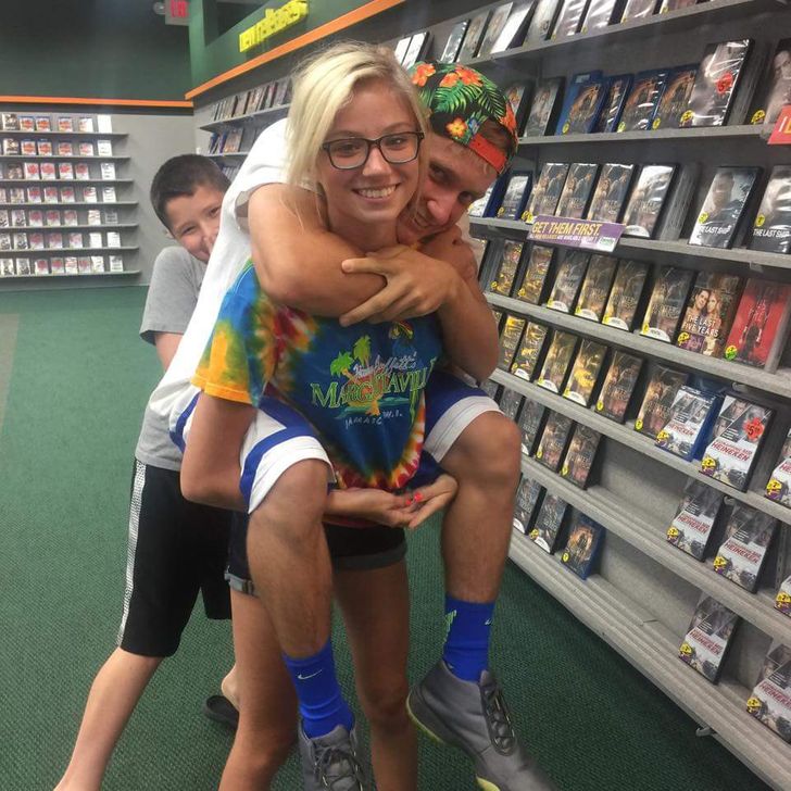 Изгледа како оваа жена да стои на рамениците на еден од овие типови.