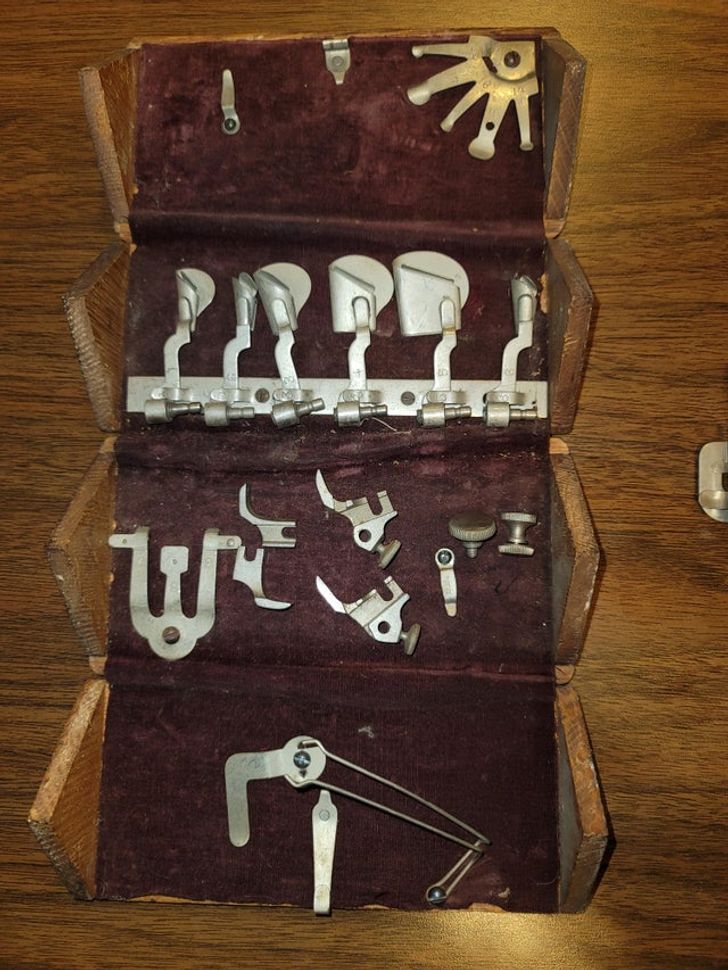„Ова е комплет за прицврстување на машини за шиење од 1800 година“.