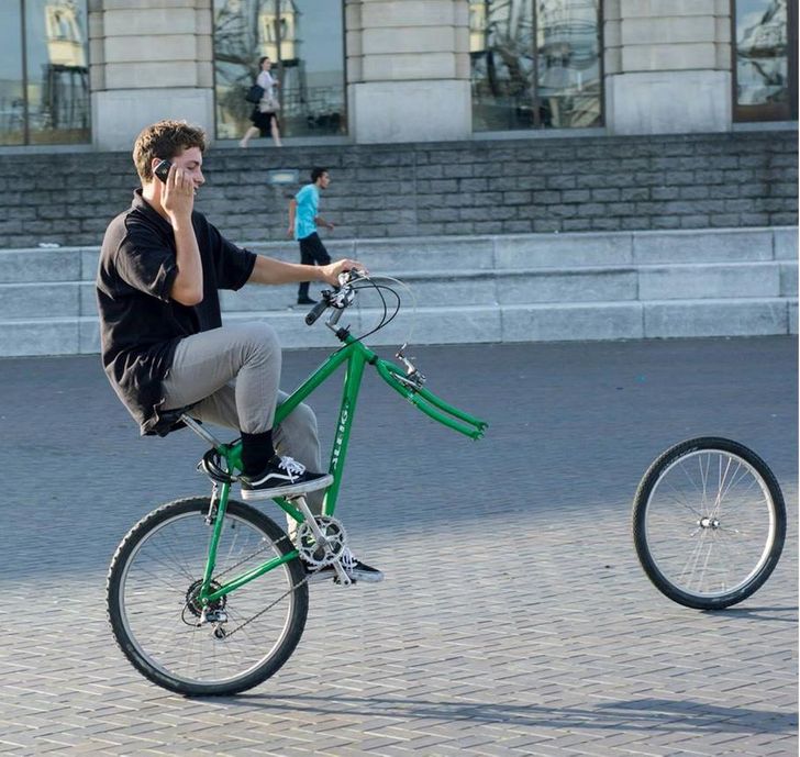 16. Дечково изгледа супер мирно. Дали воопшто знае дека едно тркало го нема?