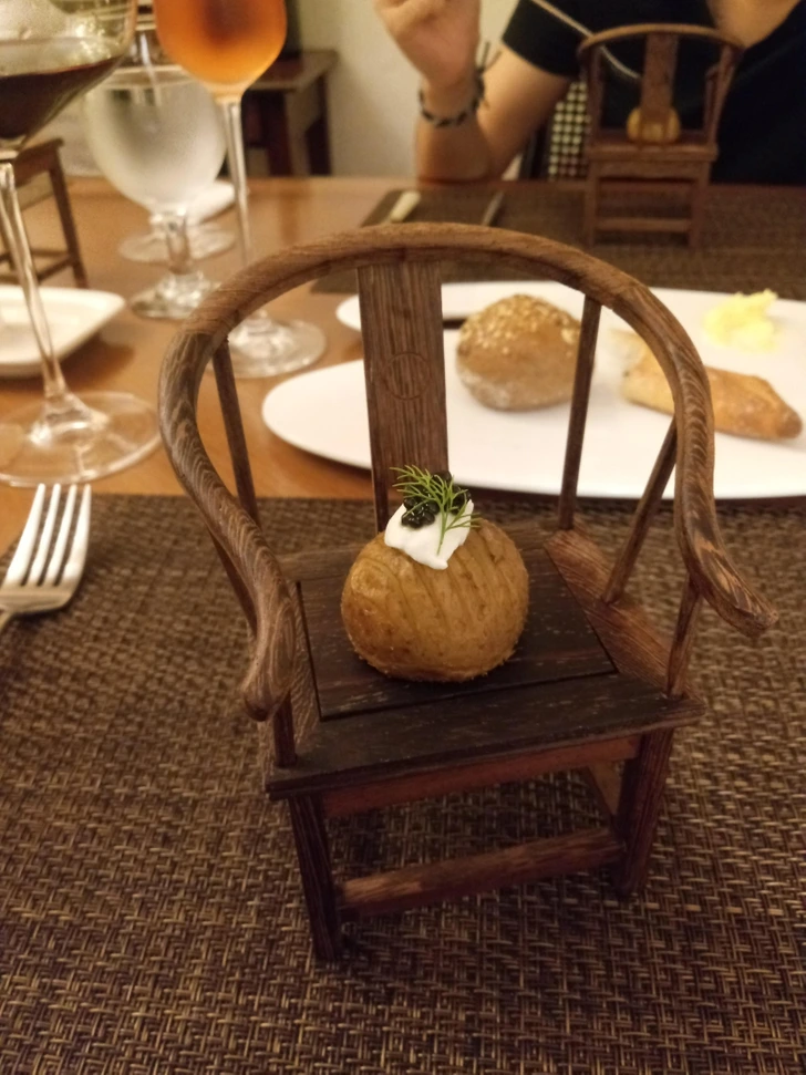 2. „На мојот пријател му послужија еден компир на мало столче“.