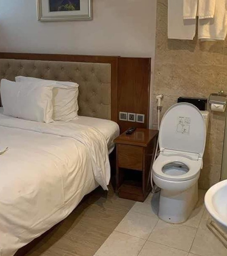 3. „Оваа хотелска соба има тоалет веднаш до креветот“