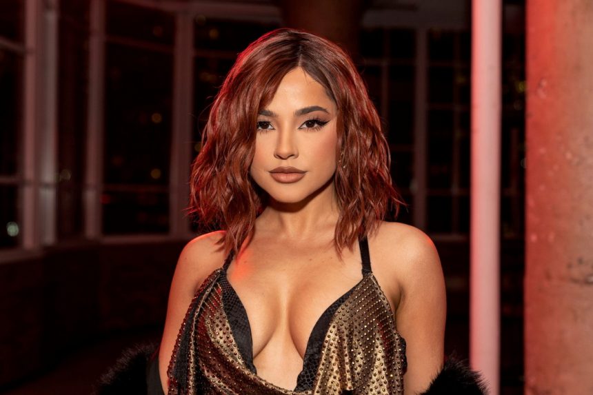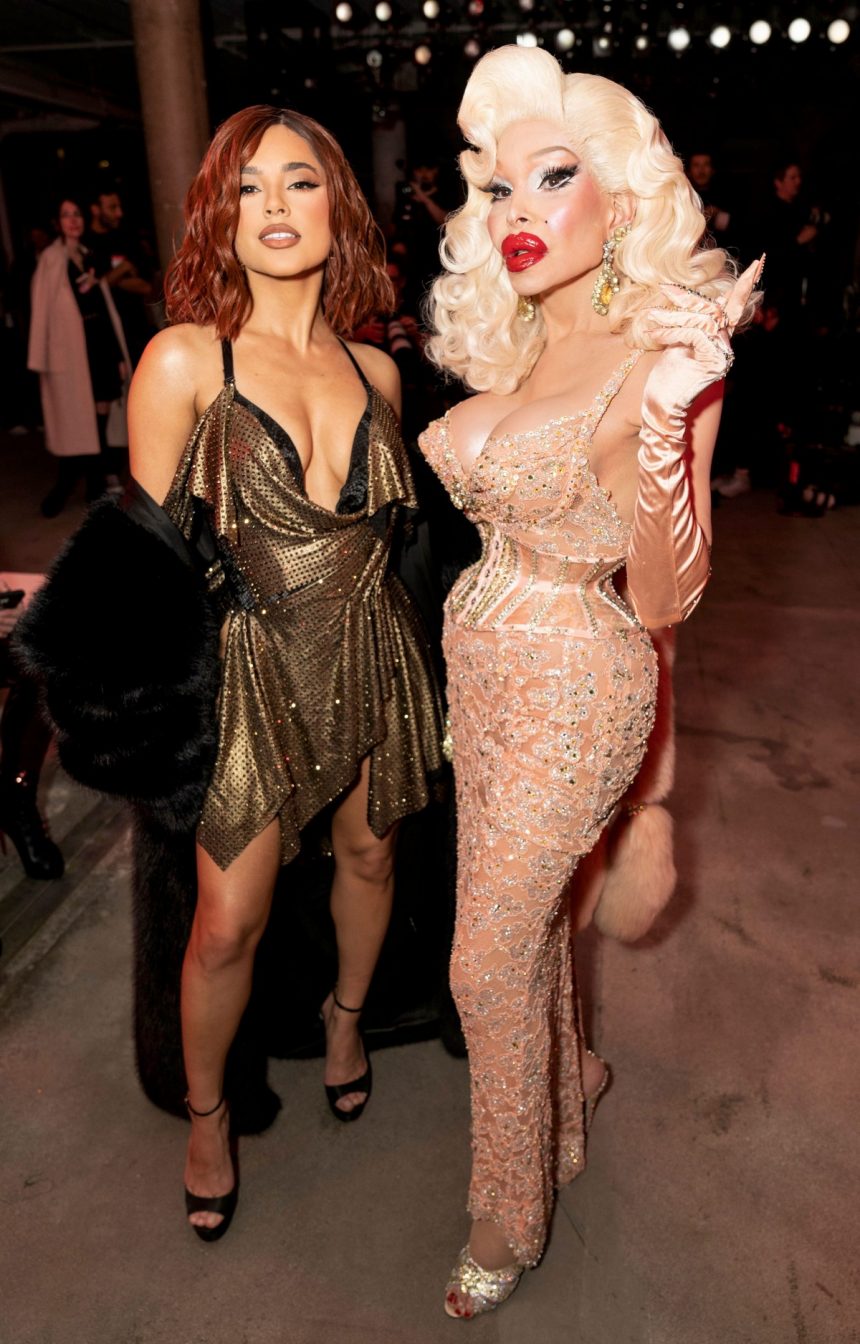Becky G stuns in a revealing dress at TheBlonds Fashion Show, showcasing her cleavage and a peek of black panties.