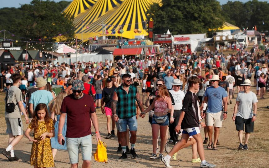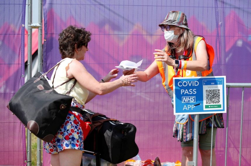 Присутните на фестивалот мораа да покажат докази за негативен тест Ковид-19 или двојни вакцинации за да добијат пристап до настанот во паркот Хенхам во Сафолк, кој исто така можеше да се пофали и со своја клиника за вакцинација каде што секој можеше да се вакцинира.