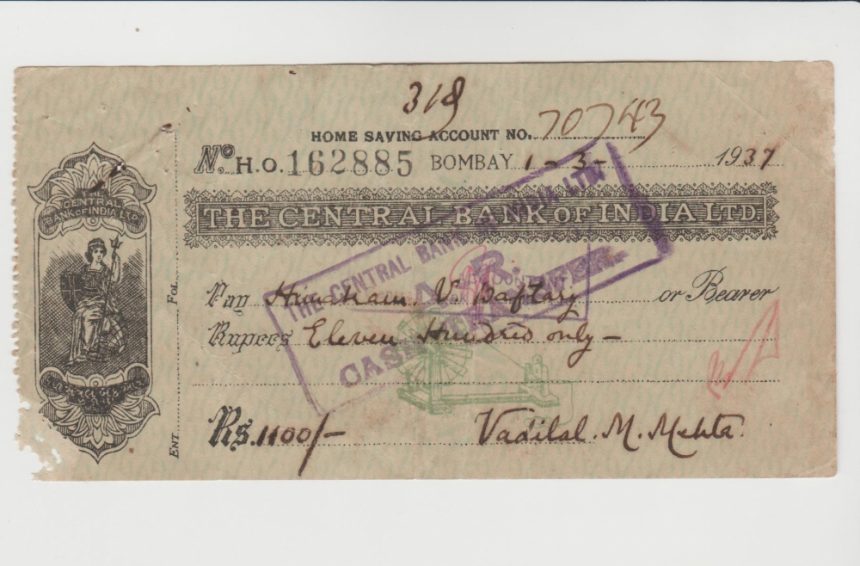 Првиот доказ за користење на чекови е пронајден во империјата Маурја, која владеела со поголемиот дел од Индија од 321 п.н.е. до 185 п.н.е. Се користел како комерцијален инструмент и бил наречен „адеша“.