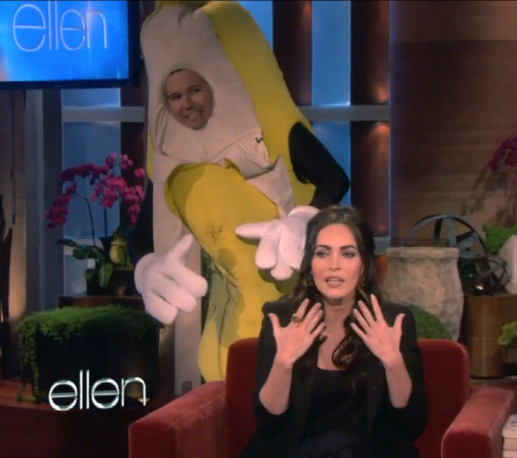 Еве што раскажува актерката за своето непријатно искуство: „Работев во кафуле и понекогаш танцував на улица во костим од банана за да привлечам муштерии. Но, најлошо од сè, оделото имаше исечок за лицето. Сите знаеја дека тоа сум јас, а пријателите постојано се возеа и викаа нешто. Шоуто на Елен Деџенерис ја разигра приказната, а на Меган Фокс ѝ се прикраде актер облечен во слична облека.