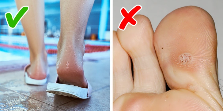 Иако може да се чувствувате пријатно да се оди бос на топлиот под околу базенот, всушност постојат многу причини да ги ставите вашите апостолки, а спречувањето на брадавици е една од нив. Топлите и влажни средини создаваат совршена почва за размножување бактерии, а кога вашата кожа е влажна и мека, ја прави поранлива на разни инфекции, вклучително и хуман папилома вирусот. Носењето апостолки во јавни тушеви и базени може да го намали ризикот од добивање брадавици на нозете.