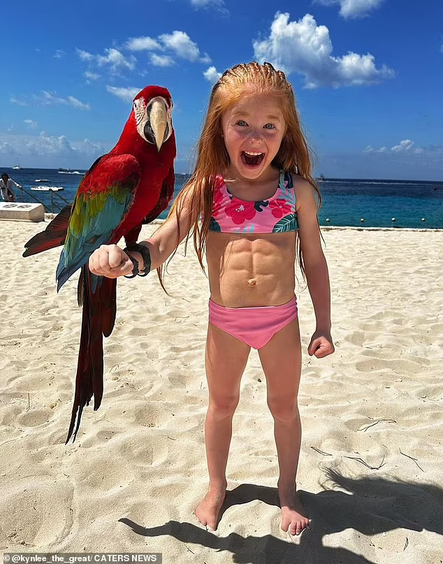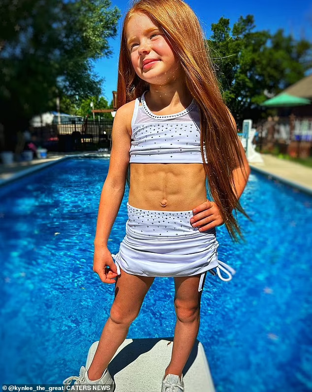 Енџел Хејман, од Лос Анџелес, рече дека првпат забележала дека нејзината ќерка, победничка на изборот за убавина, Кинли, има стомачни мускули кога имала само три години.