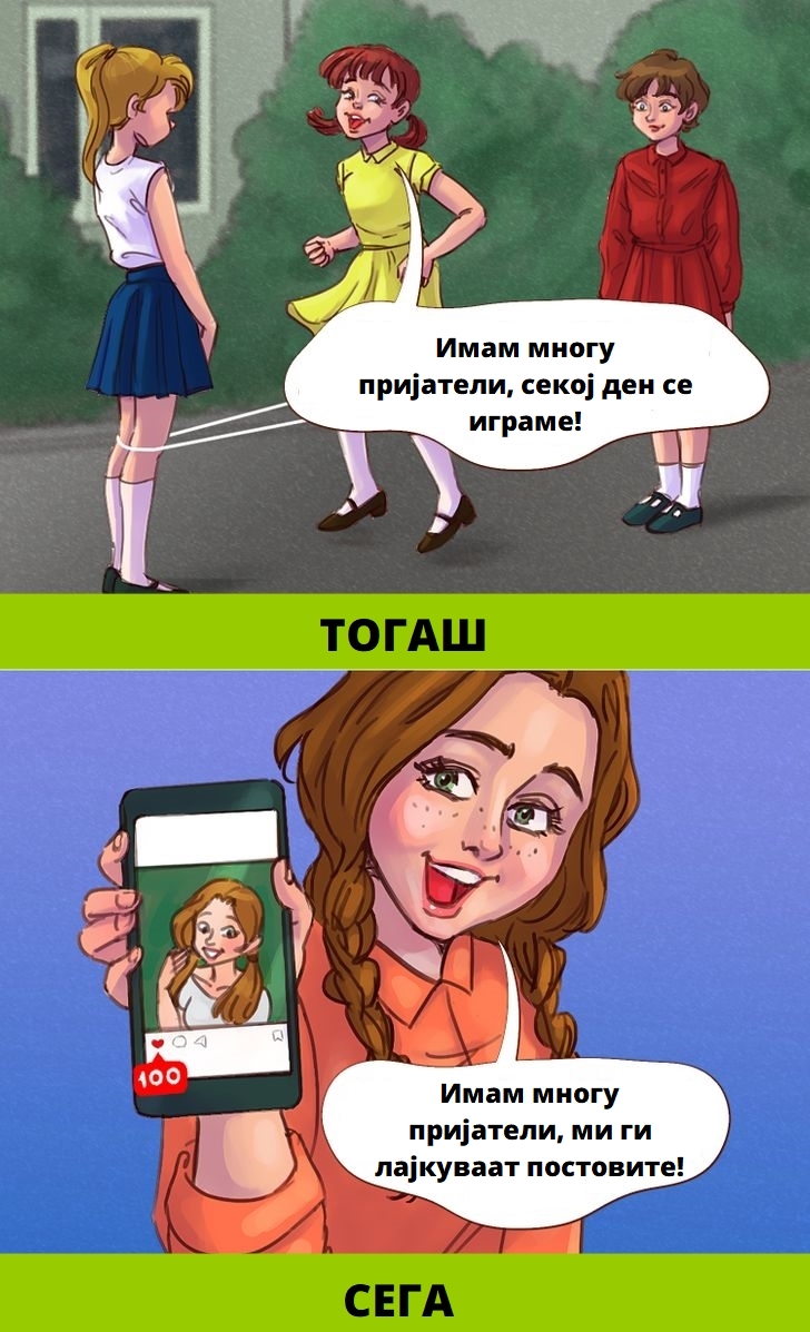 Тогаш беше тешко да се замисли животот на едно дете без пријатели да дојдат на врата и да ги замолат да си играат надвор. Современите деца имаат пријатели на социјалните мрежи, а оние најкул имаат фотографии и видеа со многу лајкови од најголем број следбеници.