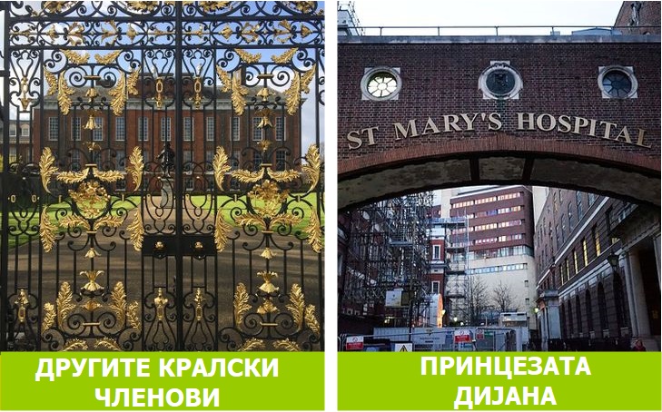 Принцезата Дајана беше прва во кралската историја која ја прекина традицијата на породувањето во домашни услови. Наместо да се породи на кралската палата, принцезата го роди принцот Вилијам во болницата Сент Мери во Лондон. Додека пак, за раѓањето на својот втор син, принцот Хари, принцезата Дајана се одлучи да не зема никакви лекови против болки за време на породувањето. Овие настани ги направија нејзините синови први кралски членови родени во локална и општа болница.