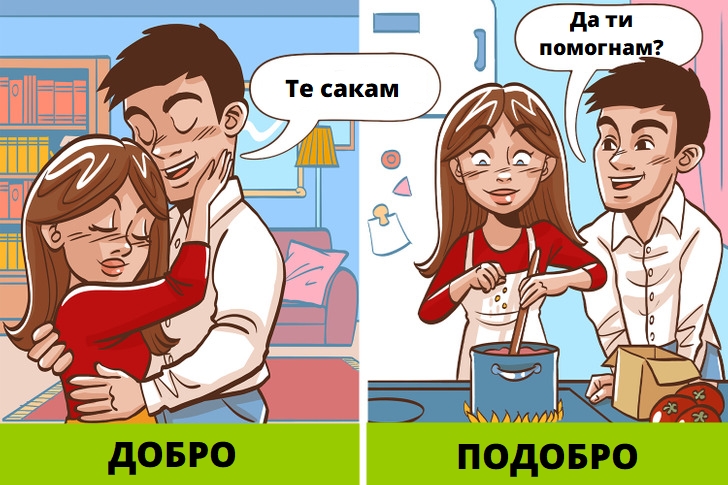 Уште подобро, кога станува збор за домашните работи, двојката може да седне и да разговара за тоа кој е одговорен за кои домашни работи. Ако вашиот партнер се бори со одредена задача, разберете со што има тешкотии и направете компромис.