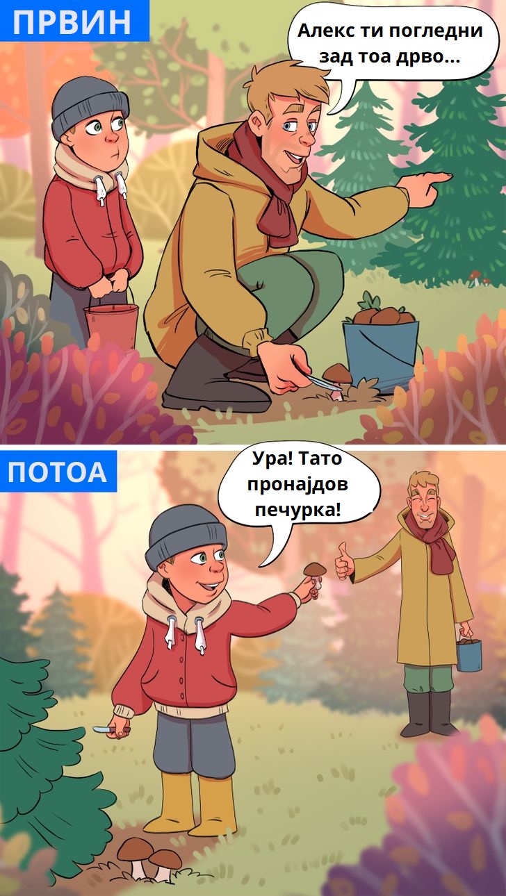 Кога одите со татко ти во шумата за печурки и тој незабележливо ви кажува каде да ги барате, за да се чувствувате како вистински берач на печурки
