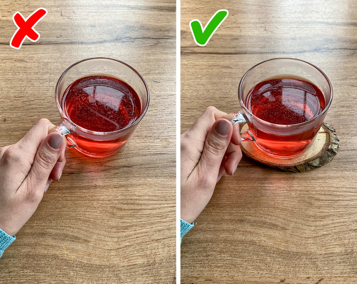 Кога сте во нечиј дом, погрижете се да ставите подлога или марамче под вашата чаша пред да ја ставите на мебел. Ако во близина нема подметачи или марамчиња, прашајте го домаќинот.