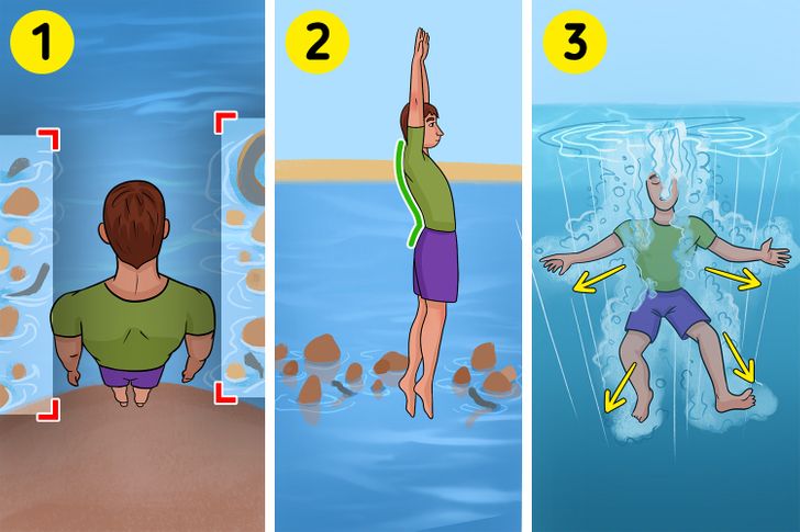 Прво, треба да најдете место на кое нема камења или други отпадоци и кое е безбедно за нурнување. Кога скокате, треба малку да го наведнете грбот со рацете над главата и прстите надолу. Откако ќе бидете во вода, треба да ги раширите рацете и нозете што е можно поскоро за да се забавите. Ова е особено корисно ако не знаете колку е длабока водата.