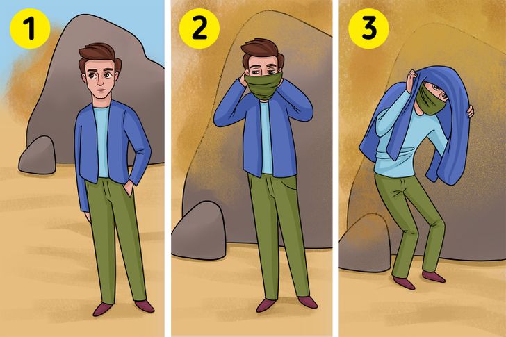 Ако се најдете во ситуација кога се приближува песочна бура и не можете да ја дочекате во автомобил или засолниште, тогаш најдете нешто зад кое ќе се скриете. Ова може да биде карпа или дрво. Покријте ги носот и устата со парче ткаенина (како бандана) за да ги заштитите и почекајте да помине бурата. Најдобро е ако можете да го намокрите парчето ткаенина пред да го облечете.