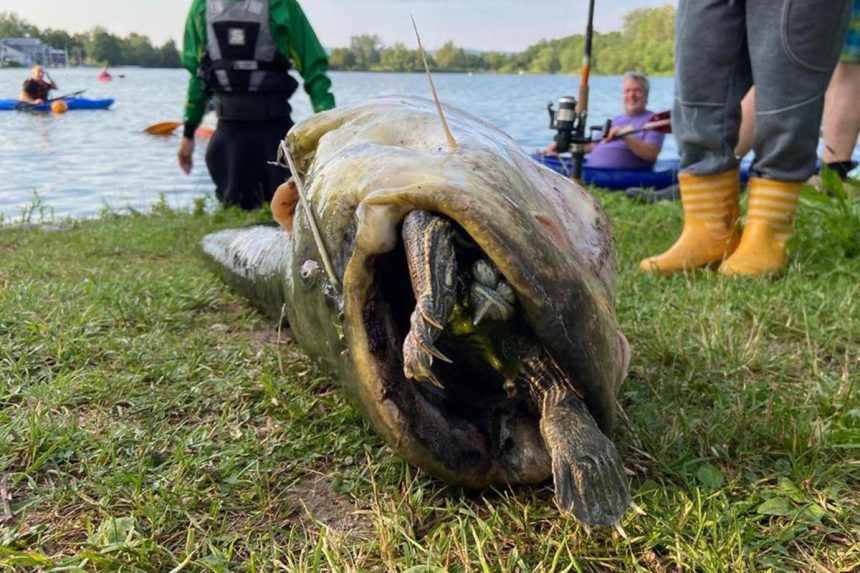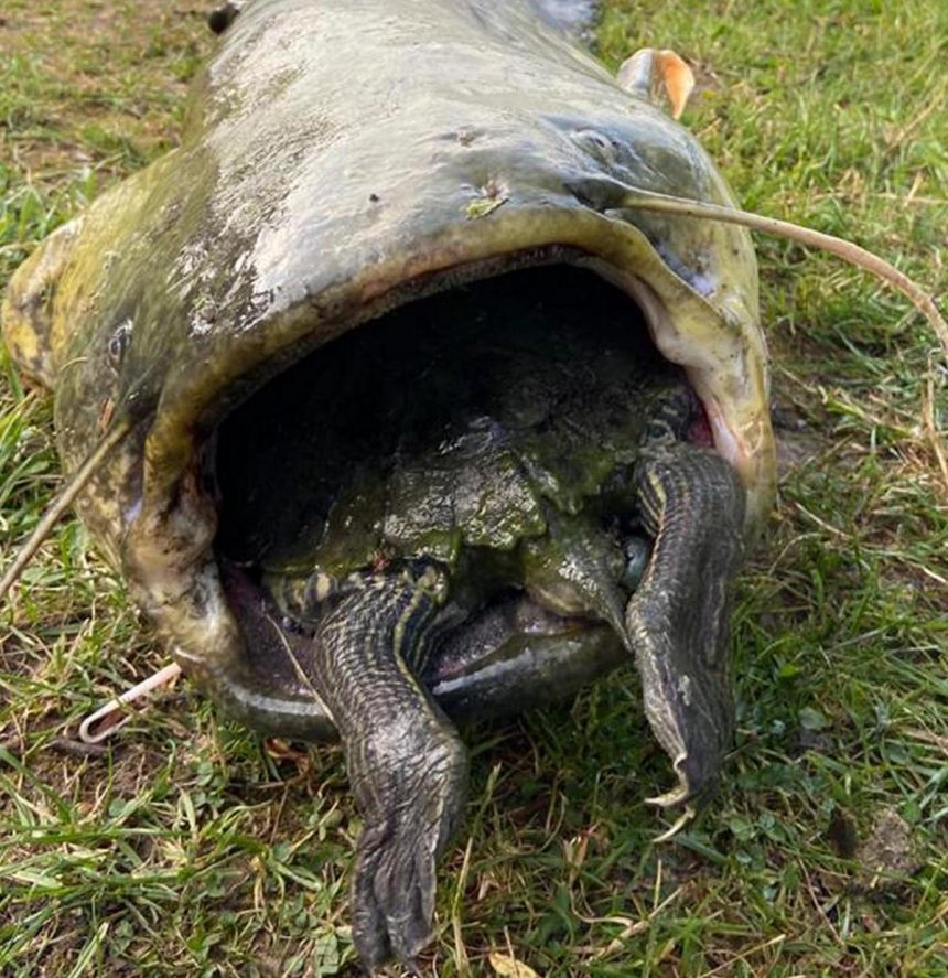 Во германскиот град Гетинген на брег беше извлечен сом со должина од нешто помалку од 1,5 метри, кој се обидуваше да проголта црвено-ушна желка. Само нозете и опашката на рептилот излегуваа од устата. Очигледно рибата била уништена од алчноста.