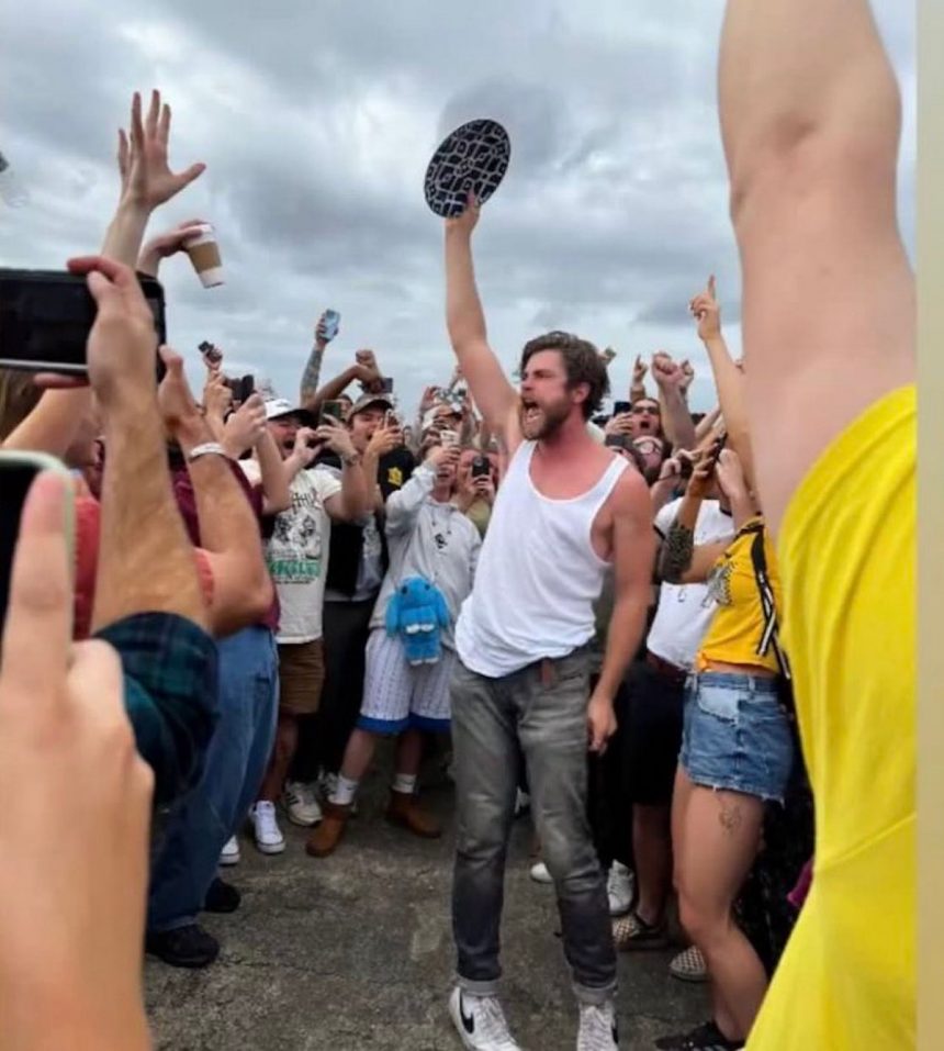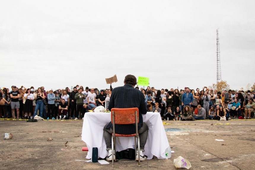 На последниот ден од тестот, тој одлучил да приреди шоу за жителите на градот. Човекот објавил оглас на социјална мрежа и ги повикал Американците да му се придружат. Се собрала цела толпа: присутните аплаудирале и извикувале зборови на охрабрување до Томински, додека тој џвакал месо и периодично застанувал да му дозволи да се свари или да се напие вода. Еден час подоцна изел цело пилешко и станал од масата со овации од жителите.