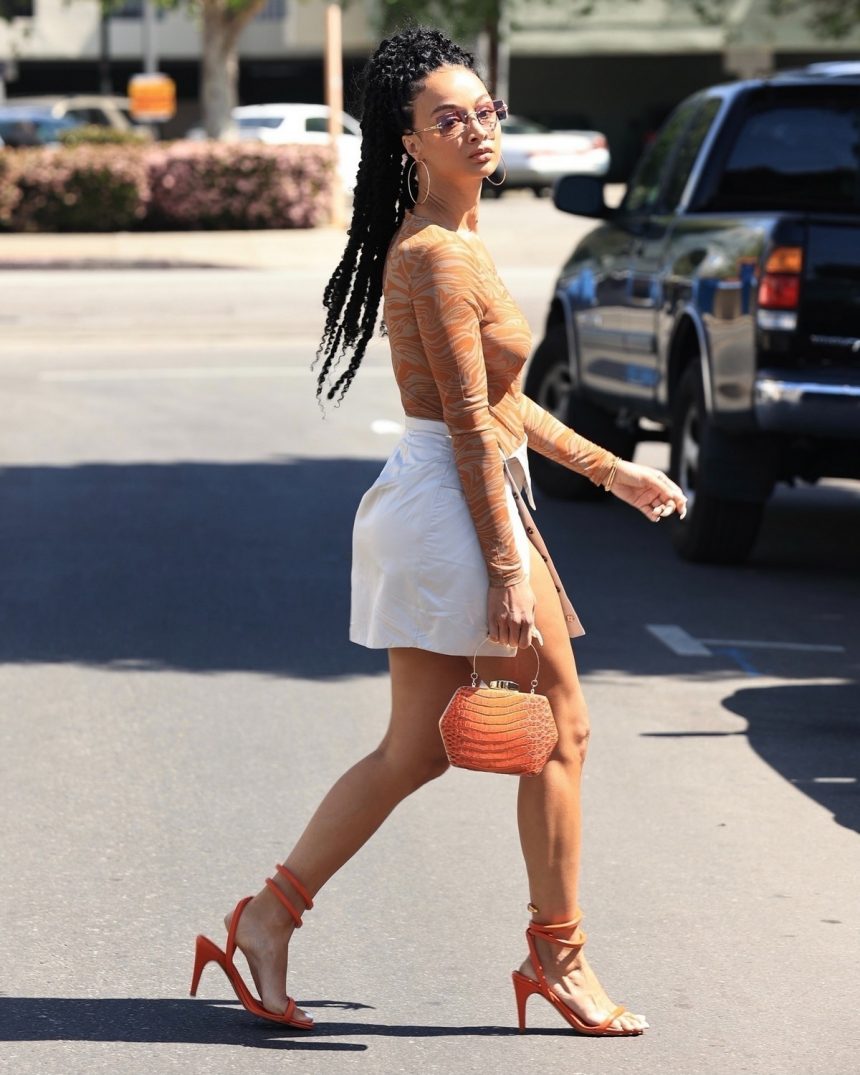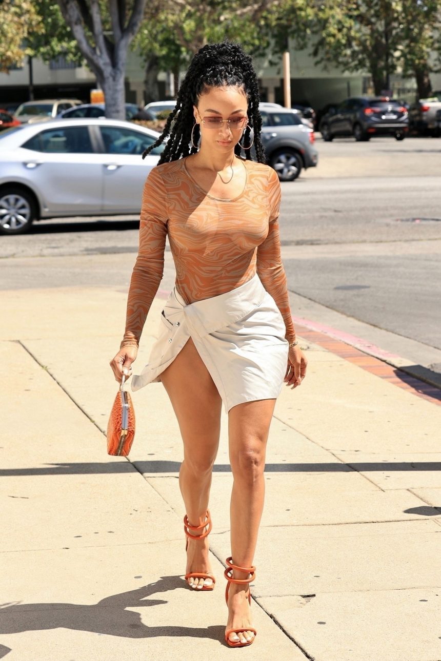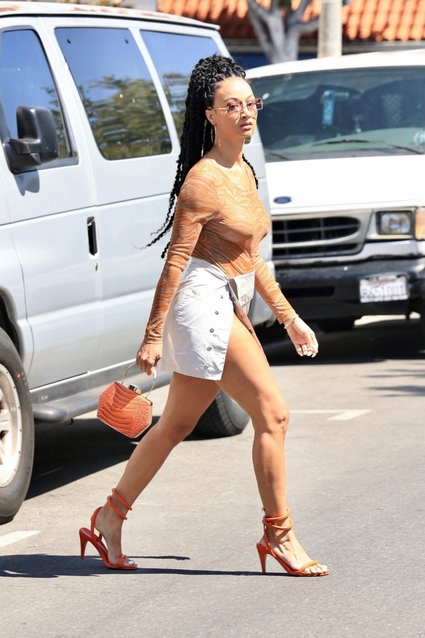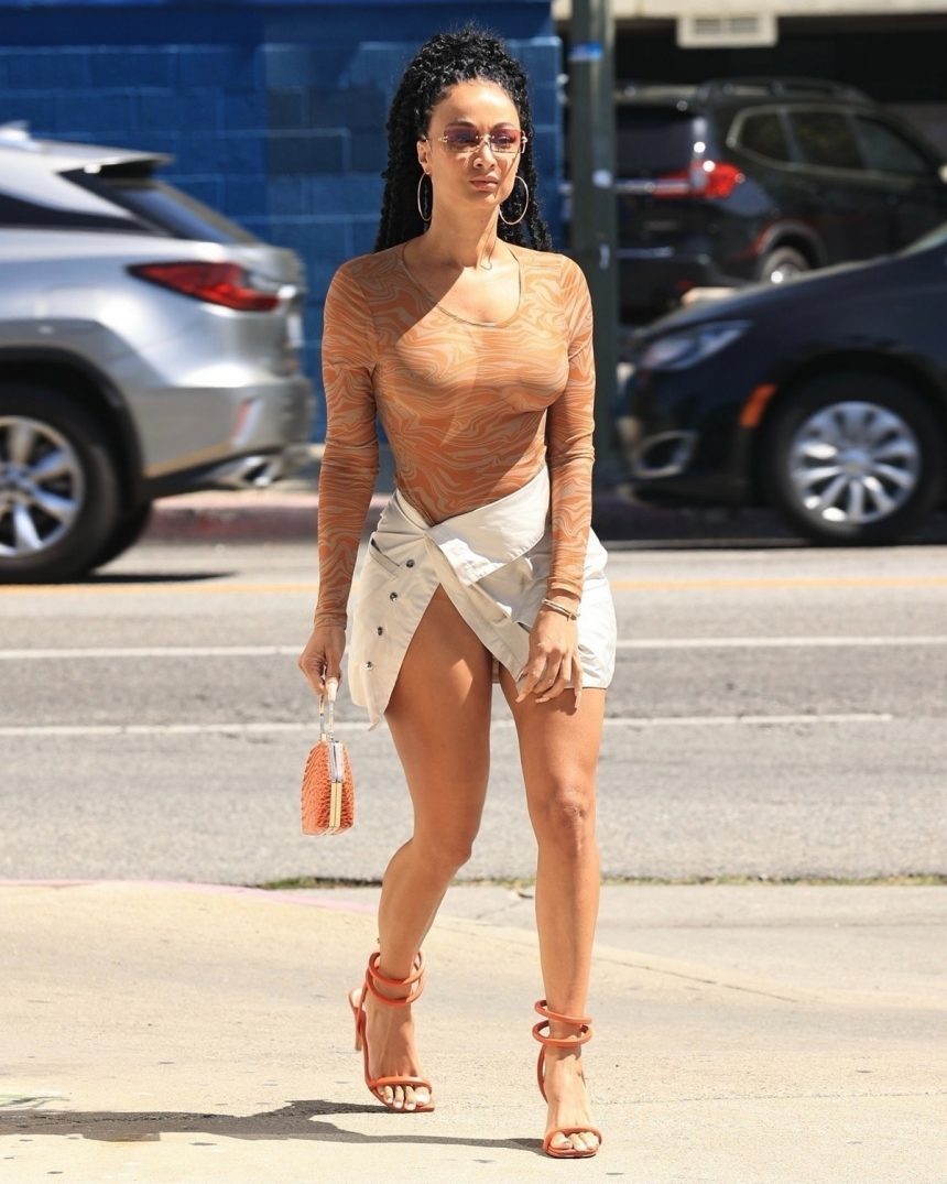 36-годишна американска медиумска личност, модел, актерка и моден дизајнер Драја Мишел се прошета низ улиците на Лос Анџелес во проѕирна блузичка и интересно мини здолниште.