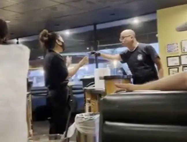 Снимката започнува среде кавгата, но веројатно на човекот му било кажано дека не може да влезе во ресторанот без маска. Насочувајќи го прстот кон еден од работниците, тој рече: „Сакате да видите што се случува кога дискриминирате? Ќе ви го срушам ресторанот“.