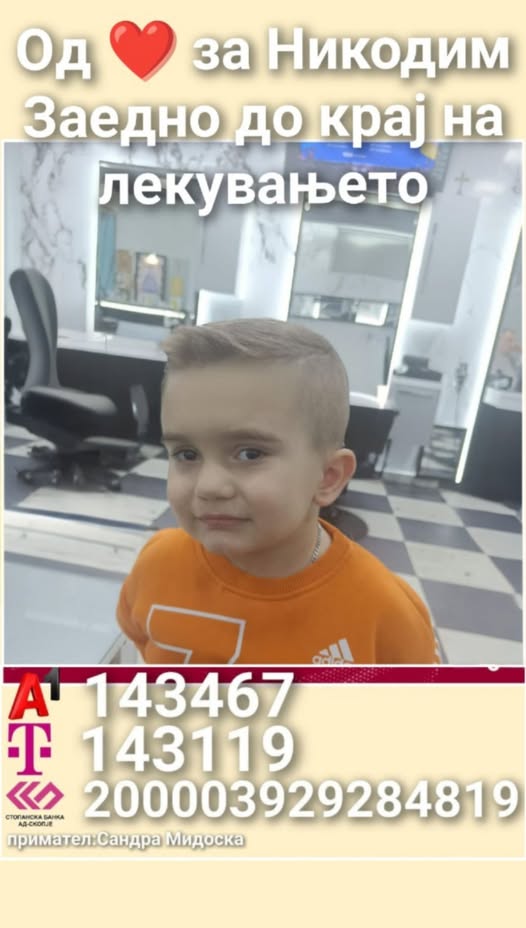 Секоја донација, без разлика на износот, значи чекор поблиску до спас на еден детски живот. Секое споделување помага оваа приказна да стигне до повеќе луѓе и да се зголемат шансите за успешен третман.