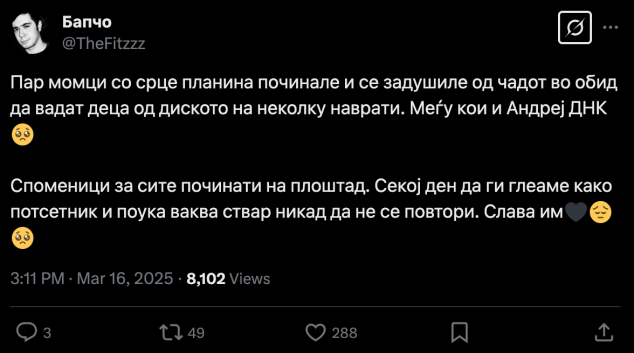 Значи мора од корен да се менува државата. Две автобуски несреќи, пожар во модуларна болница, пожар во дискотека. ДОСТА Е! Никакви стандарди нит контроли