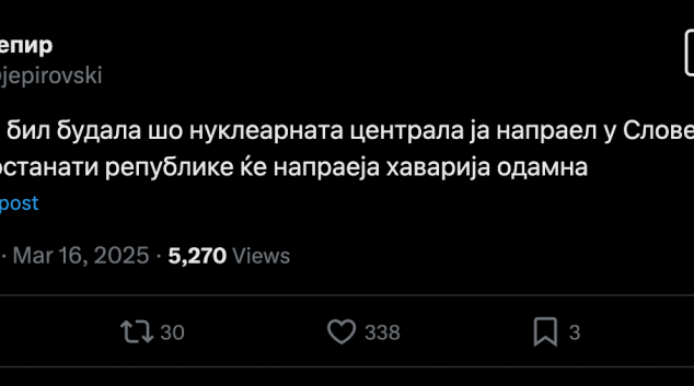 Тито не бил будала шо нуклеарната централа ја напраел у Словенија. Свите останати републике ќе напраеја хаварија одамна
