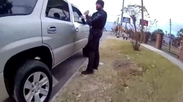 Овој 39-годишен маж е уапсен бидејќи поминал на црвено светло (ДА, ЗА ТОА ТРЕБА ДА СЕ АПСИ!). При апсењето пријавил дека има оружје на себе, што е легално според законот на Флорида. Полицаецот Шон Лоури му се заблагодари за неговата искреност и го замоли да излезе од автомобилот. Откако осомничениот излезе од автомобилот, тогаш полицајката …