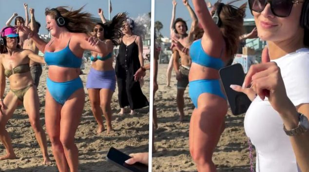 Една дама особено се истакна за време на тивката диско забава на плажата во Венеција