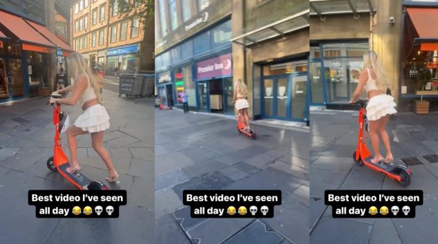 Спасувајте се кој може: Плавуша на електричен тротинет!