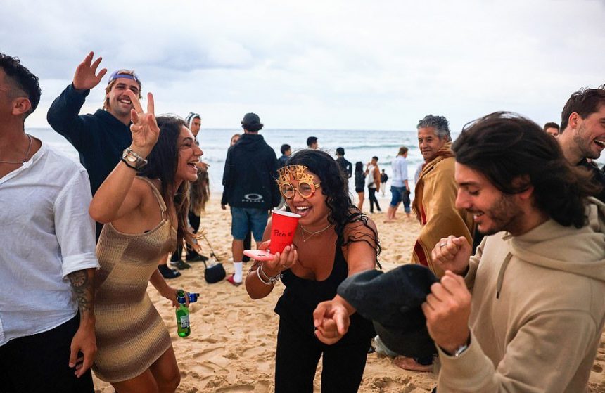 Австралијците ја дочекаа Новата година со стил: Бурни и влажни прослави на плажите