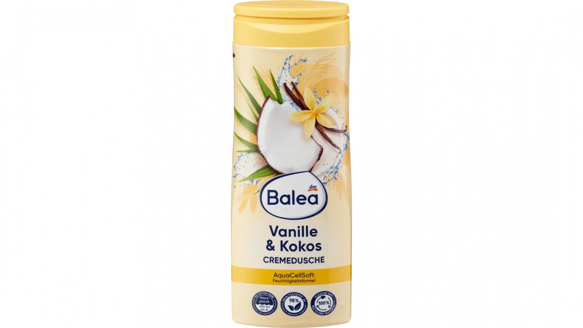 Гелот за туширање е еден од оние производи што секогаш ги имаме дома и што брзо стануваат дел од секојдневната рутина. Balea кремастиот гел за туширање со мирис на ванила и кокос темелно ја чисти кожата, а благодарение на pH-неутралната формула и дерматолошки потврдената подносливост, претставува нежен избор за секојдневна употреба. Неговиот топол, егзотичен мирис остава пријатно чувство на свежина и нега, а цената од 55 денари го прави уште попривлечен избор.