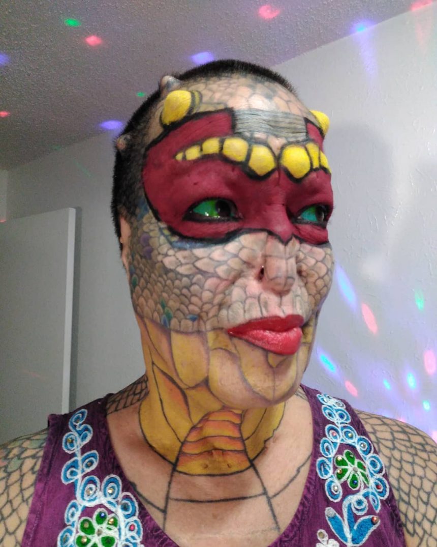 Некогаш, Ричард Ернандез од Тексас, САД, беше банкар и изгледаше многу поинаку. Сега има 60 години, официјално го смени името во Тијамат Легија Медуза, се смета себеси за не-бинарна личност и „вистински рептил“, откако потроши 83,5 илјади долари за трансформација на телото.