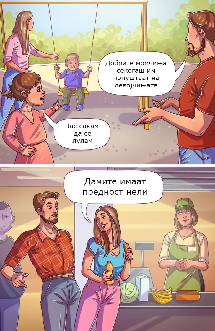 Уште од раѓање, општеството им диктира на родителите да ги воспитуваат своите синови како идни џентлмени: тие не треба да плачат и секогаш треба да им го даваат своето место (или што и да е друго) на девојчињата. Можеби овие правила би функционирале ако самите возрасни мажи се држат до нив.
