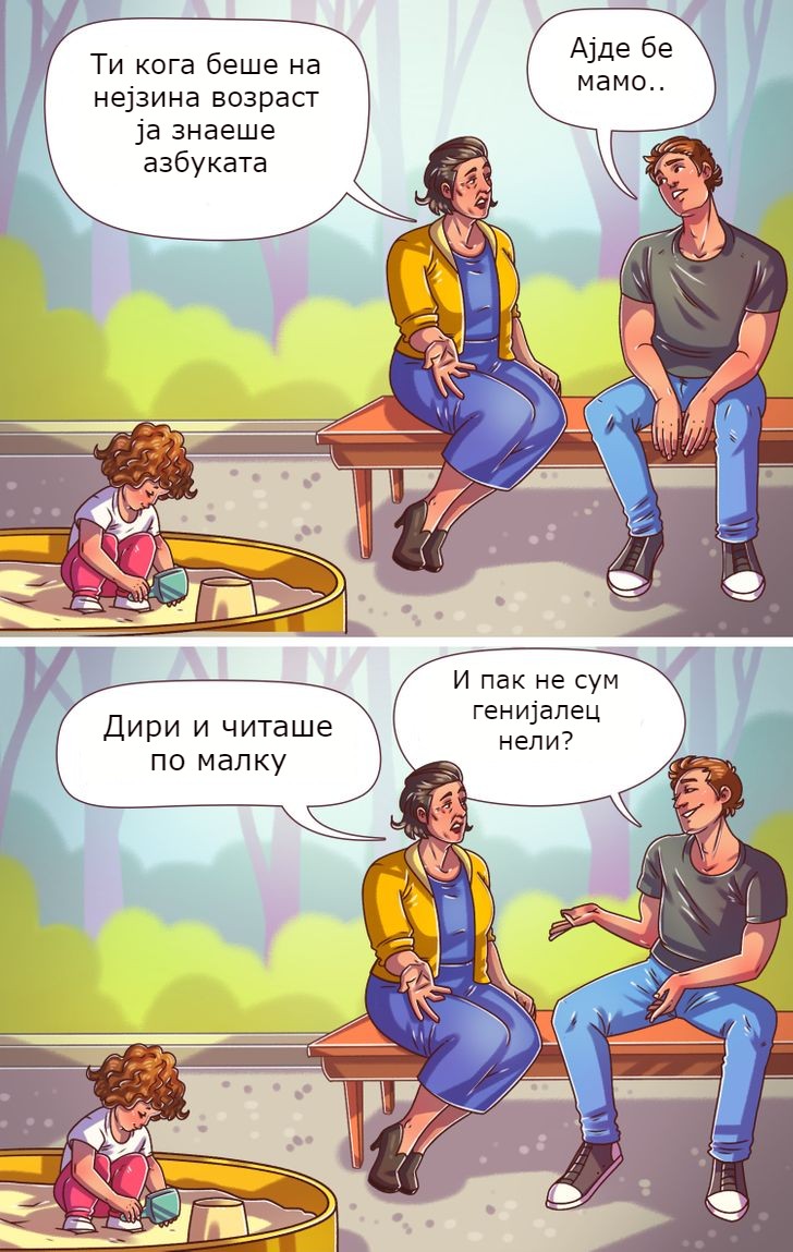Секое дете се развива со свое темпо и дефинитивно не мора да стекнат одредени вештини до одредена возраст. Нема потреба да ги присилувате децата и да ги вознемирувате мајките и татковците со такви забелешки.