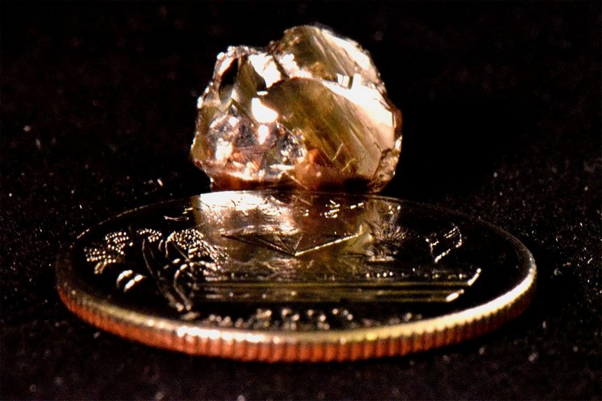 После 40 минути потрага, сопругата забележала едно необично жолто каменче, кое не ни личело многу на дијамант. Сепак, го однеле кај локалниот проценител, кој бил многу пријатно изненаден од откритието. Се работело за многу редок жолт дијамант. После брусењето го однеле на проценител, кој го проценил на најмалку 150.000 долари.