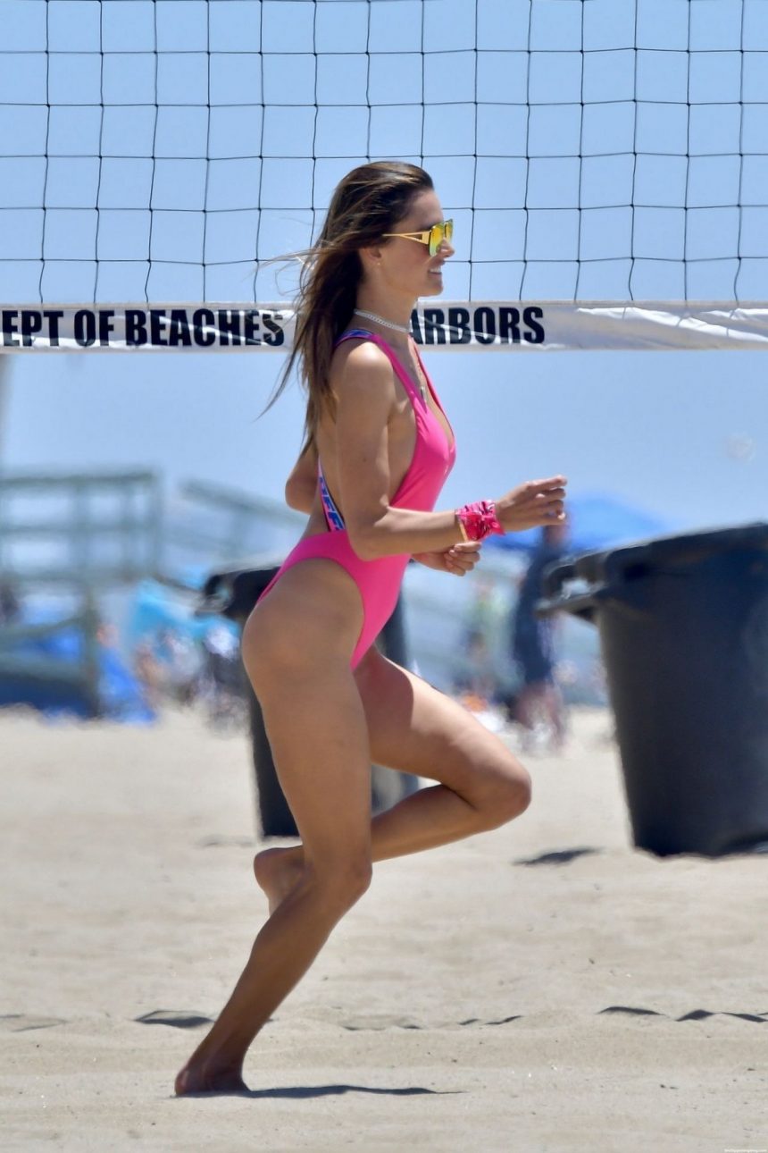 Познатата манекенка го покажа спортскиот дух во едноделниот костим за капење. 40-годишниот бразилски супермодел Алесандра Амбросио уживаше на плажа во Санта Моника.