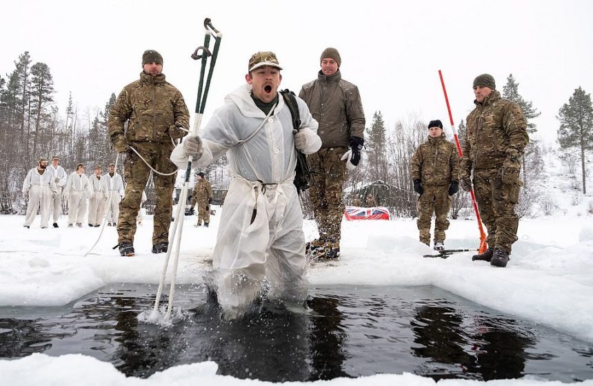 Британските командоси добија екстремна обука за да преживеат во норвешките шуми, каде што температурите може да се спуштат и до -30 ° С. Пилотите и персоналот за летање на Здружената команда за хеликоптери беа повикани на вежба која се одвиваше во норвешката воздушна база Бардуфос. Пред да заминат на небото над Арктичкиот круг, пилотите во Велика Британија мора да поминат низ „Студената војна“, традиција што трае веќе 52 години.