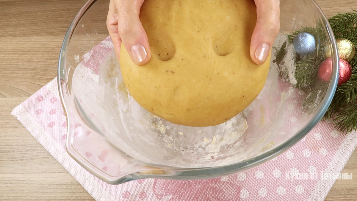 По мешањето на течните состојки, додајте дел од однапред просеано брашно, прашок за печиво и замесете меко, пријатно тесто. Не е потребно да се става во фрижидер! Само посипете малку брашно на работната површина, за да не се залепи.