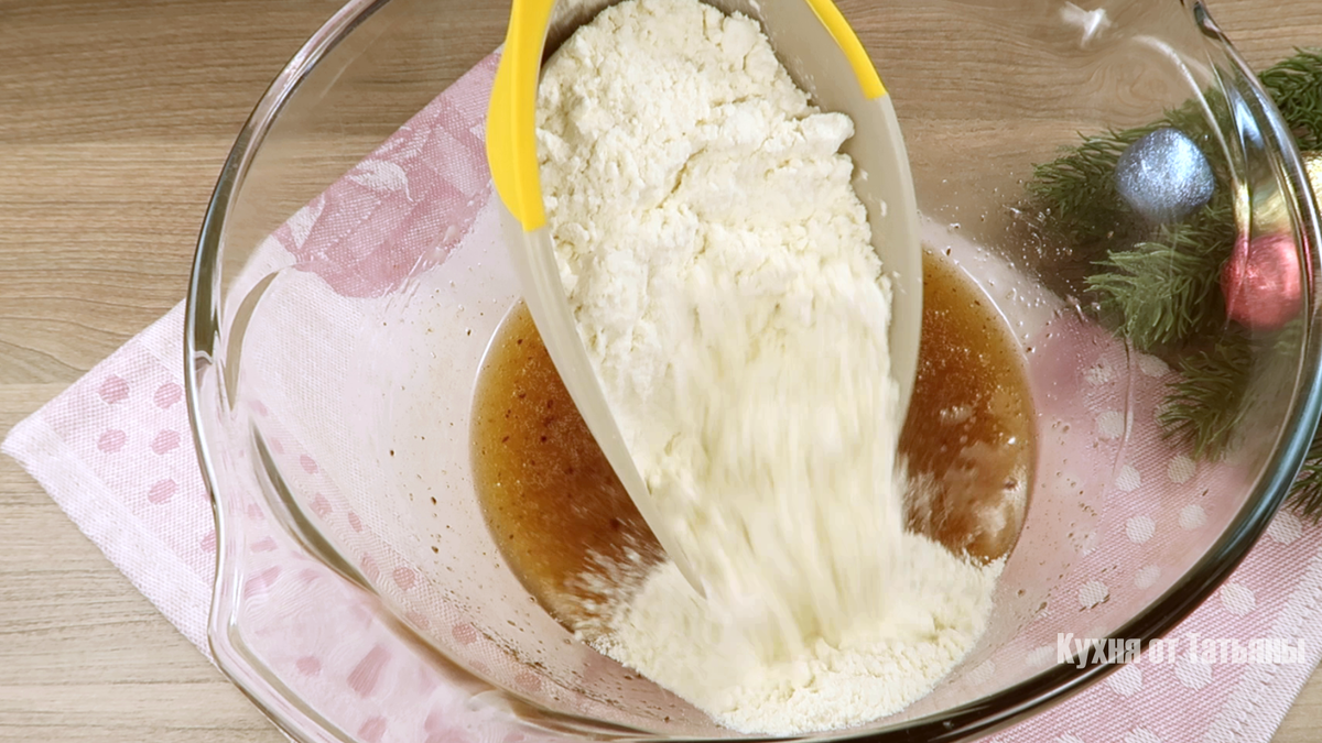 Во еден сад за мешање додадете две јајца, шеќер, малку сол, цимет и ѓумбир. Добро измешајте. Потоа истурете растително масло без мирис и додадете мед. Повторно промешајте. Овој букет на ароми ќе му даде препознатлив празничен карактер на тестото.