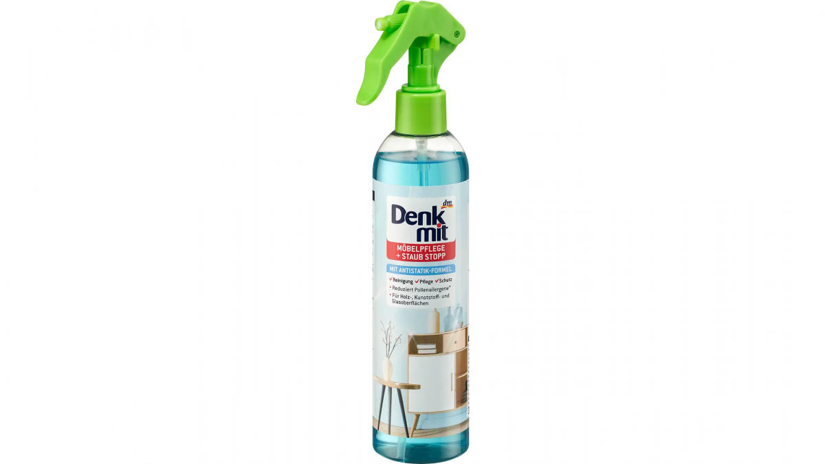 За одржување на мебелот, Denkmit спрејот за мебел и прашина со антистатична формула чини 119 денари. Овој производ е наменет за дрвени, пластични и стаклени површини, а истовремено чисти, штити и помага во спречување на повторно насобирање прашина. Благодарение на антистатичната формула, мебелот подолго останува свеж и сјаен, а производот придонесува и за намалување на алергени од полен, што е особено значајно во пролетниот период.