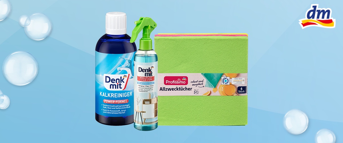 Со производите од Denkmit и Profissimo, пролетното чистење може да стане поедноставно, поефикасно и подобро организирано. Без разлика дали станува збор за кујната, бањата, прозорците, мебелот или текстилот во домот, во dm ве очекуваат практични решенија за чист и свеж дом, по секогаш поволни цени.