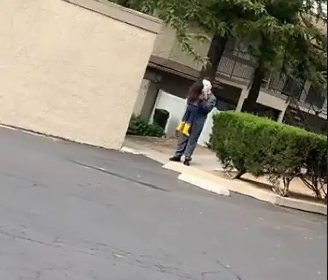 Потоа го забележува во далечина и извикува: „Мајкл Мајерс, те сакам!“, Пред да истрча до ликот на хорор филмот и да го прегрне.