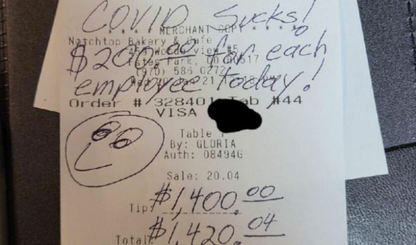 Клиентот, познат само како Дејвид, на својата сметка од 20 долари оставил по 200 долари (10.000 ден) за секој вработен и напишал на ливче: „Ковид е заникаде! 200 долари за секој вработен денес“.
