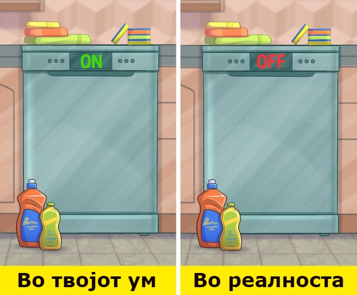 Пример: верувате дека сте ја пуштиле машината за миење садови пред да излезете од дома, а кога ќе се вратите гледате дека не е така.
