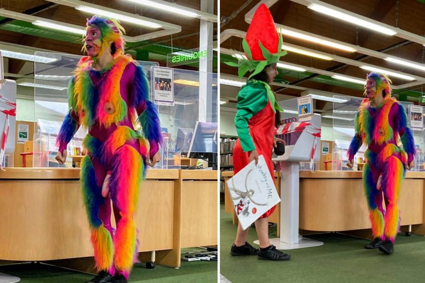 Истрагата е во тек откако во Гудмајс библиотеката во Лондон човек облечен како „шарен мајмун на кој му висат гениталиите“ се појави на детски настан.