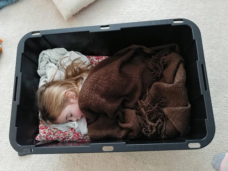 3. „Ќерка ми мести кревети на случајни места. Ја најдов како спие во ова“.